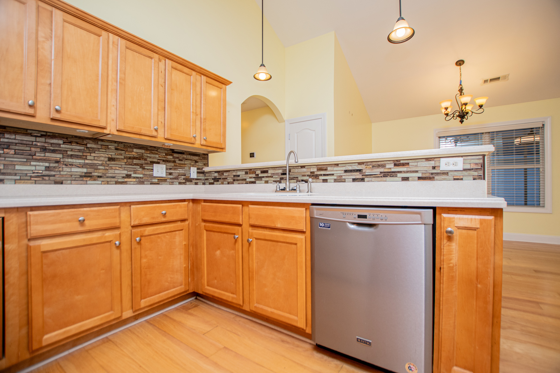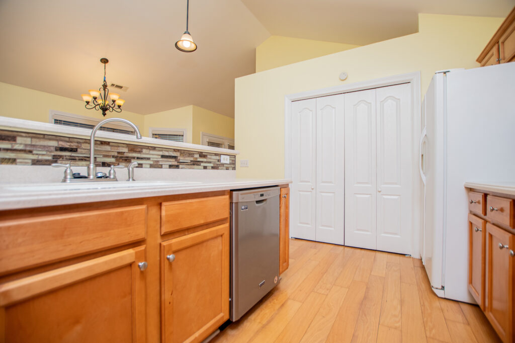 Inside, you’ll find a thoughtful, open layout with the primary bedroom on the main level, spacious living areas, and natural light throughout. The home features hardwood and tile flooring, a comfortable great room, and a functional kitchen that flows easily into the dining space—perfect for everyday living or entertaining.
