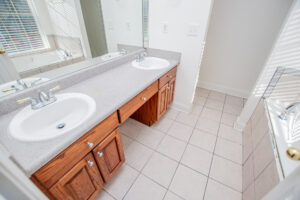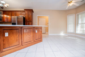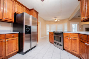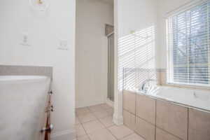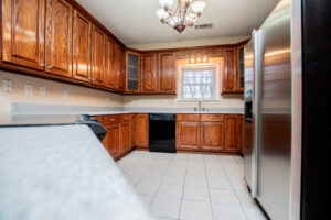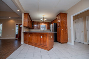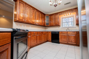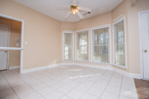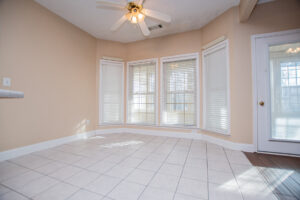 The kitchen provides generous wood cabinetry, ample counter space, and an easy flow into the dining/breakfast area with bright bay windows. One of the standout features is the enclosed sunroom, giving you extra flex space for relaxing, a home office, or a playroom—while still enjoying the wooded setting.